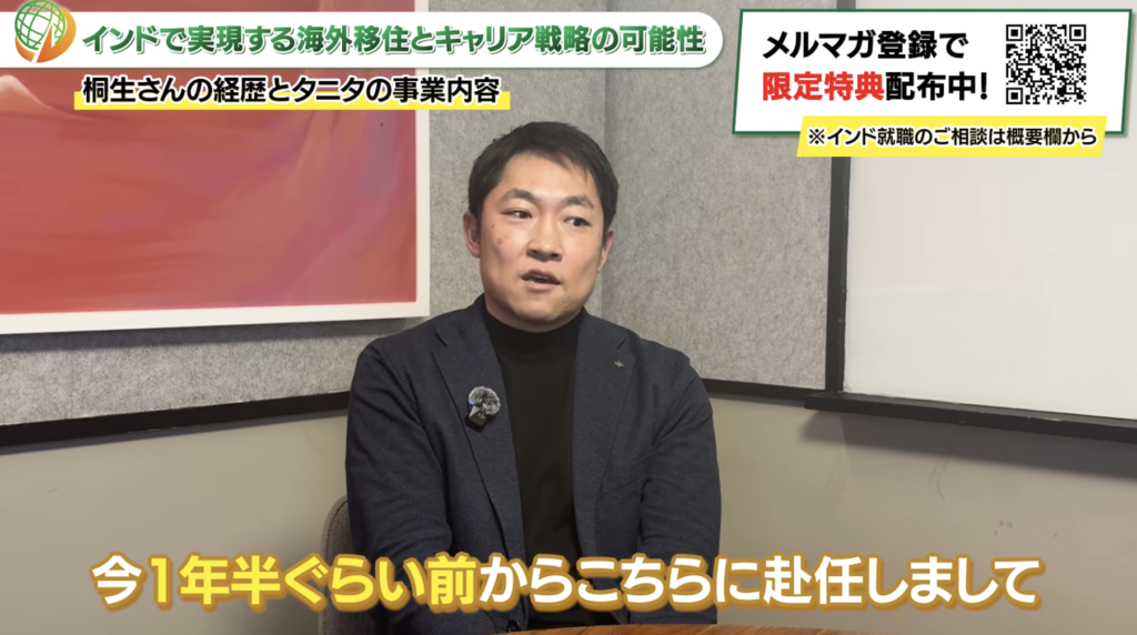 本日は、インドで実現する海外移住とキャリア戦略の可能性というテーマで、TANITA India Private Limitedのマネージングダイレクターの桐生さんにお話を伺いました。本日は貴重なお時間をいただきありがとうございました